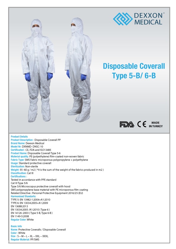 Tek Kullanımlık Lamineli Koruyucu Tulum 5-6/B